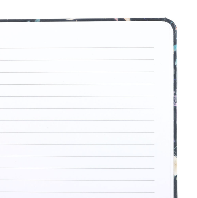 Of je het nu gebruikt voor notities, lijsten of dagboeken, dit prachtige A5-notitieboekje zal je bureaublad naar een hoger niveau tillen met een mystiek ontwerp van een vliegende nachtuil omringd door nachtvlinders, halve manen en bosplanten. Dit notitieboekje wordt geaccentueerd door pagina's van goudfolie en een blauwe elastische sluiting.