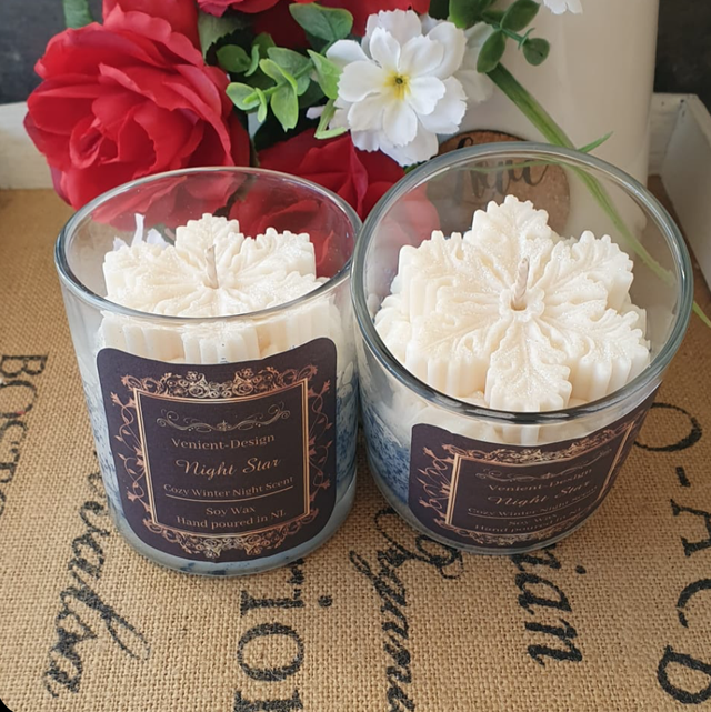 Maak kennis met onze Night Star kaars met de geur "Cozy Winter Night".