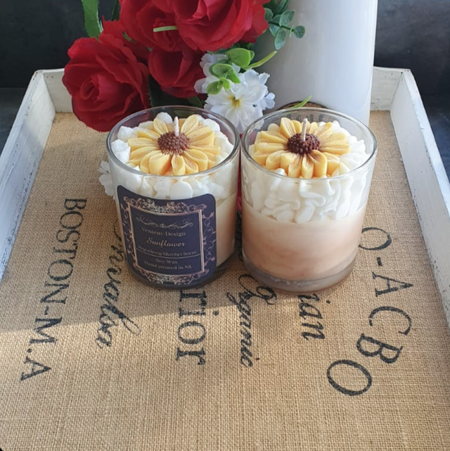 Geniet van de zoete geuren gecombineerd met de charme van zonnebloem die er levensecht uitziet.